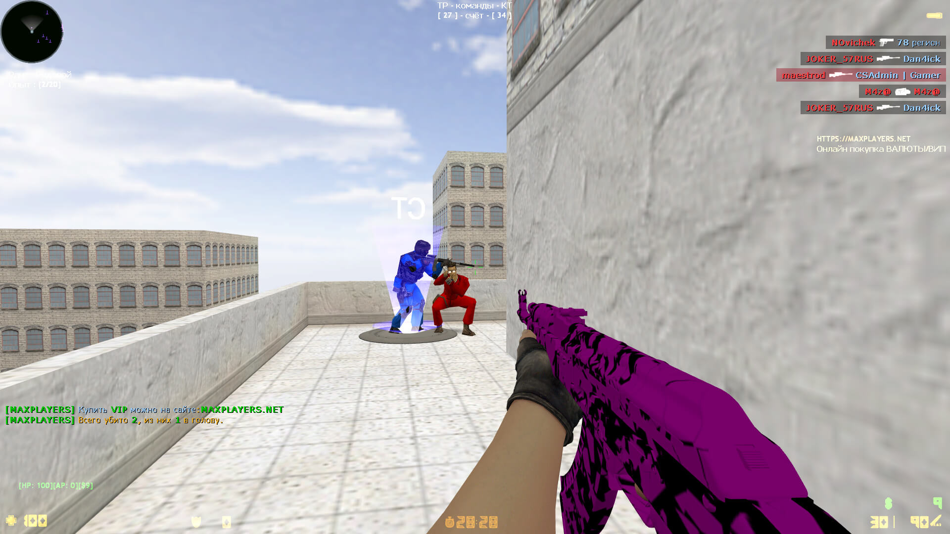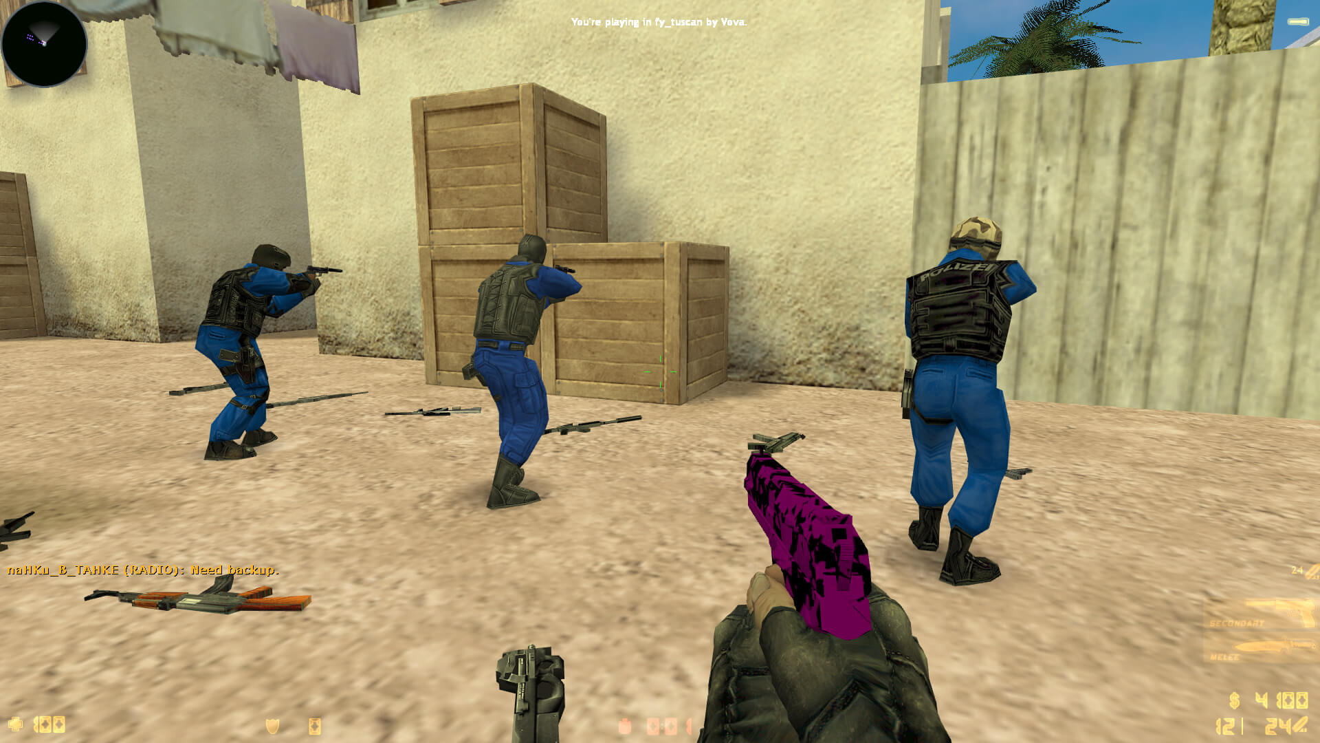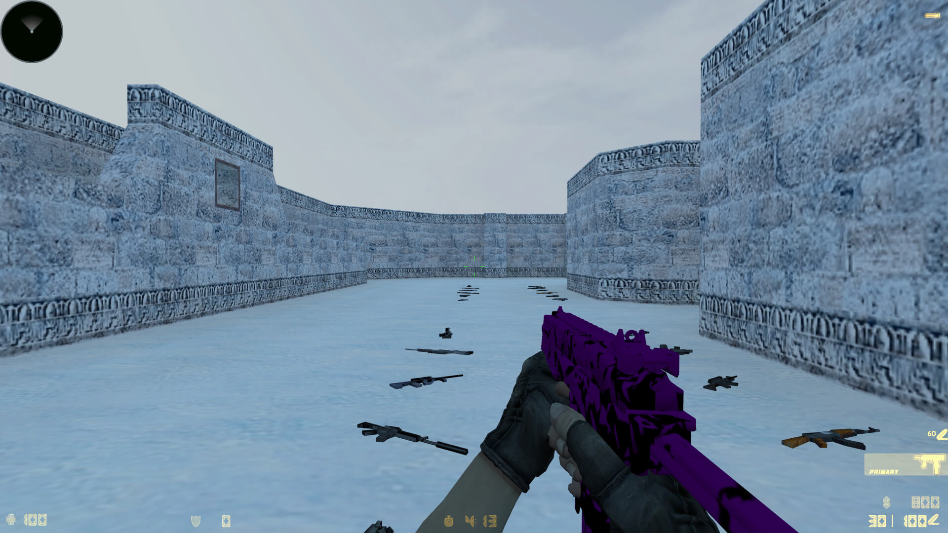 - Высокая заметность: Яркие цвета облегчают обнаружение врагов, особенно в тёмных зонах карт, таких как cs_assault, что идеально для динамичных режимов, вроде Deathmatch.