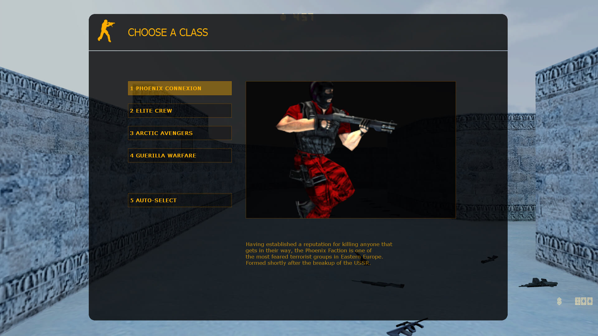 Роль: Атакующая сторона, стремящаяся выполнить миссии, такие как установка бомбы на картах, вроде de_dust2, или удержание заложников на cs_office.